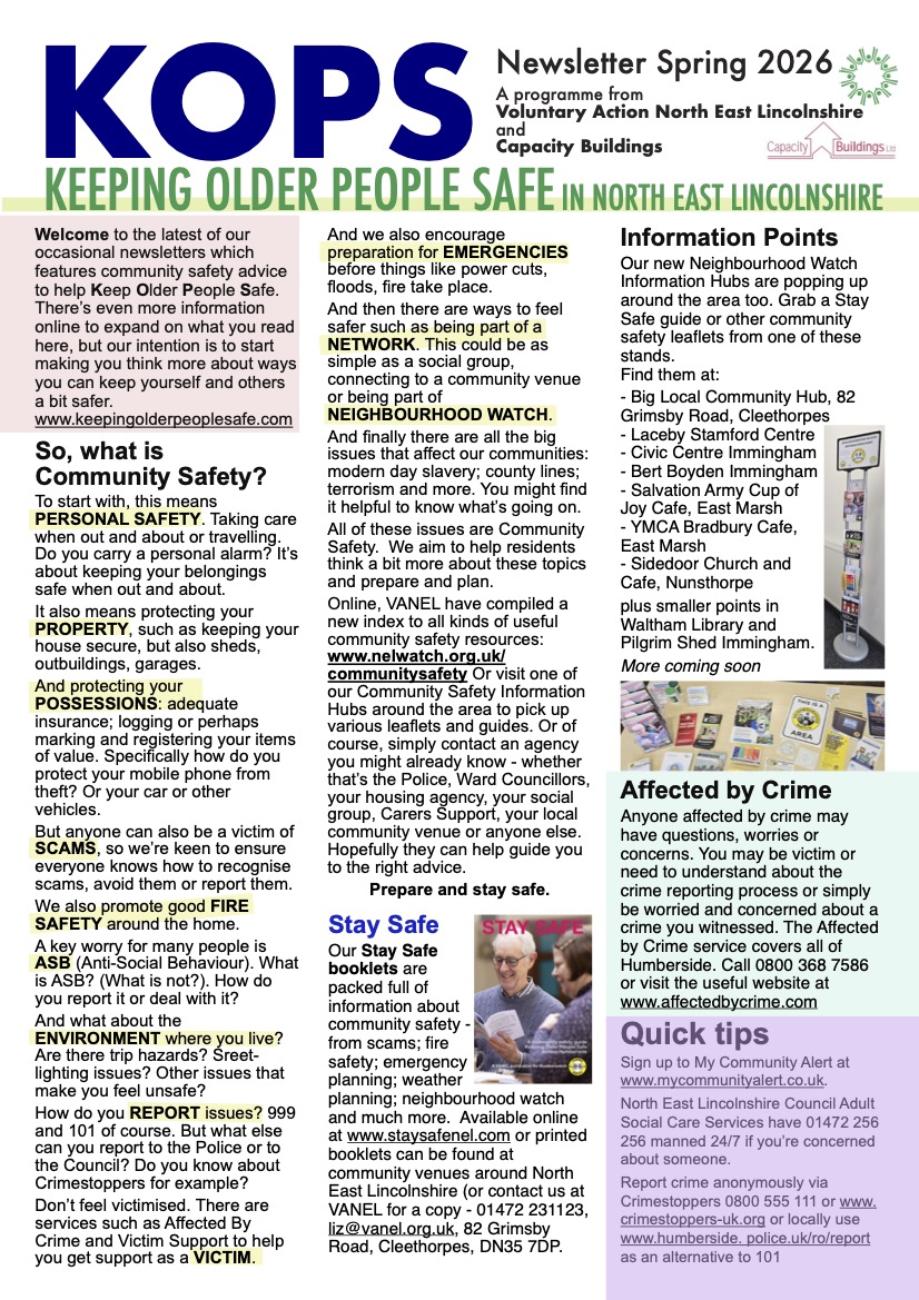 KOPS (Keeping Older People Safe) is a programme led by VANEL and Capacity Buildings in partnership with different organisations and partners. It’s a ‘brand’ bringing together everything we do to support older people to stay safe.